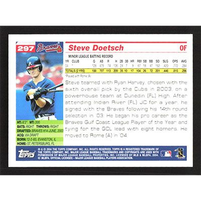 This is a 2005 Topps Steve Doetsch baseball card. The card is #297 and pictures show condition.