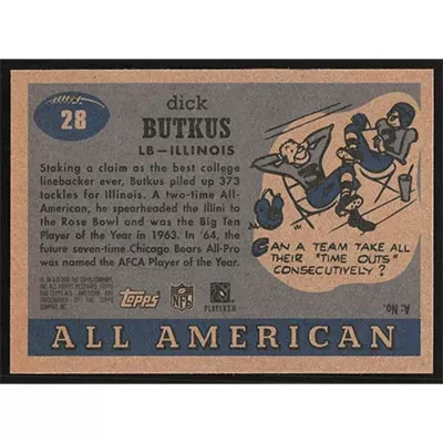 This is a 2005 Topps All American Dick Butkus football card. The card is #28 and pictures show condition.