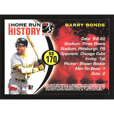 This is a 2005 Topps Barry Bonds Home Run History baseball card. The card is #BB170 and pictures show condition.