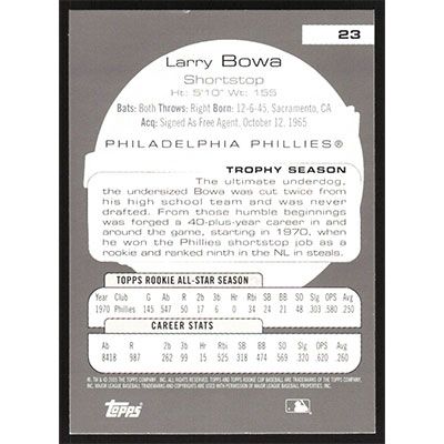 This is a 2005 Topps Rookie Cup Larry Bowa baseball card. The card is #23 and pictures show condition.