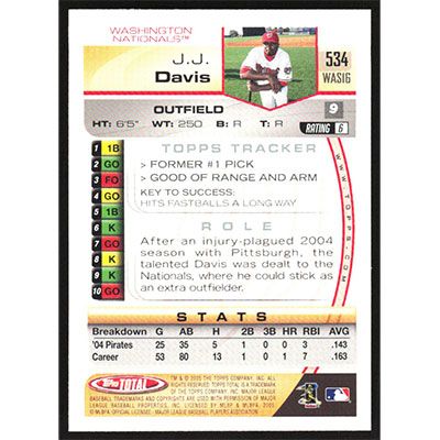 This is a 2005 Topps Total J.J. Davis baseball card. The card is #534 and pictures show condition.