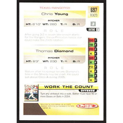 This is a 2005 Topps Total Thomas Diamond and Chris Young baseball card. The card is #697 and pictures show condition.