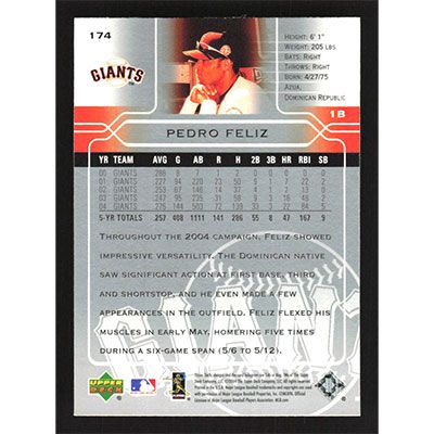 This is a 2005 Upper Deck Pedro Feliz baseball card. The card is #174 and pictures show condition.