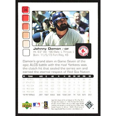 This is a 2005 Upper Deck Pros & Prospects Johnny Damon baseball card. The card is #36 and pictures show condition.