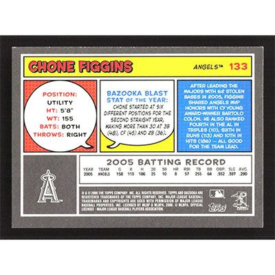 This is a 2006 Bazooka Chone Figgins baseball card. The card is #133 and pictures show condition.