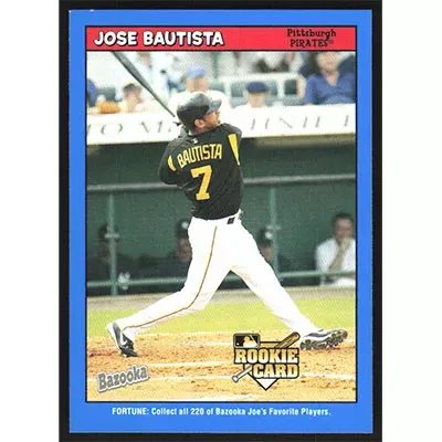 This is a 2006 Bazooka Blue Fortune Jose Bautista baseball card. The card is #217 and pictures show condition. Team(s): Pittsburgh Pirates Rookie Card (RC)