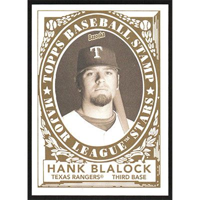 This is a 2006 Bazooka Stamps Hank Blalock baseball card. The card is #3 and pictures show condition.