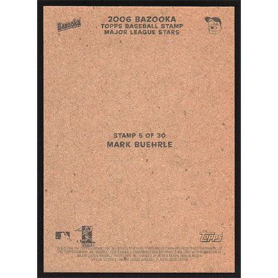 This is a 2006 Bazooka Stamps Mark Buehrle baseball card. The card is #5 and pictures show condition.