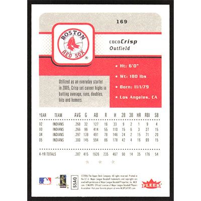 This is a 2006 Fleer Coco Crisp baseball card. The card is #169 and pictures show condition.