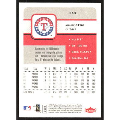 This is a 2006 Fleer Adam Eaton baseball card. The card is #244 and pictures show condition.