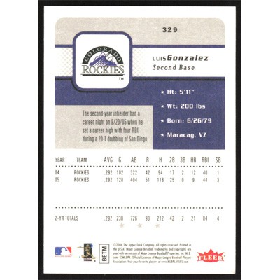 This is a 2006 Fleer Luis Gonzalez baseball card. The card is #329 and pictures show condition.