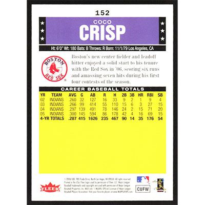 This is a 2006 Fleer Tradition Coco Crisp baseball card. The card is #152 and pictures show condition.