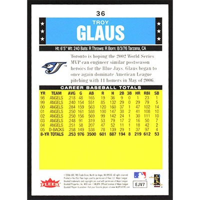 This is a 2006 Fleer Tradition Troy Glaus baseball card. The card is #36 and pictures show condition.