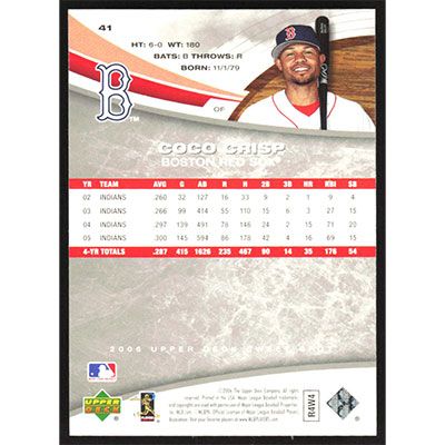 This is a 2006 Sweet Spot Coco Crisp baseball card. The card is #41 and pictures show condition.