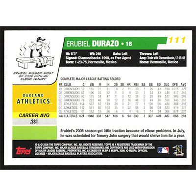 This is a 2006 Topps Erubiel Durazo baseball card. The card is #111 and pictures show condition.