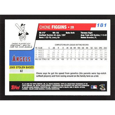 This is a 2006 Topps Chone Figgins baseball card. The card is #181 and pictures show condition.