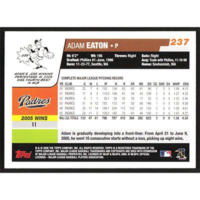This is a 2006 Topps Adam Eaton baseball card. The card is #237 and pictures show condition.