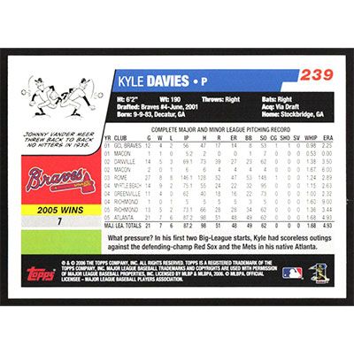 This is a 2006 Topps Kyle Davies baseball card. The card is #239 and pictures show condition.