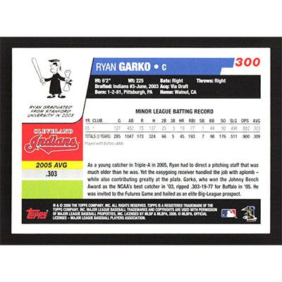 This is a 2006 Topps Ryan Garko baseball card. The card is #300 and pictures show condition.