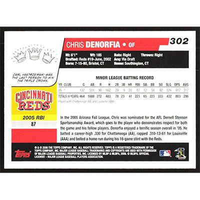 This is a 2006 Topps Chris Denorfia baseball card. The card is #302 and pictures show condition.