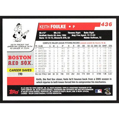 This is a 2006 Topps Keith Foulke baseball card. The card is #436 and pictures show condition.