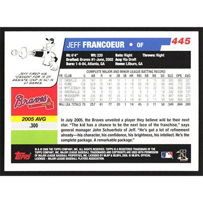 This is a 2006 Topps Jeff Francoeur baseball card. The card is #445 and pictures show condition.