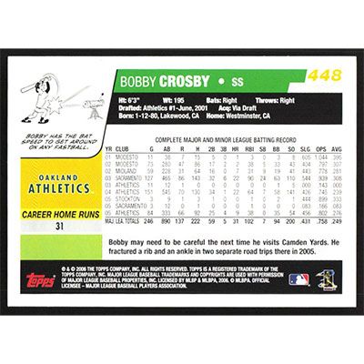 This is a 2006 Topps Bobby Crosby baseball card. The card is #448 and pictures show condition.
