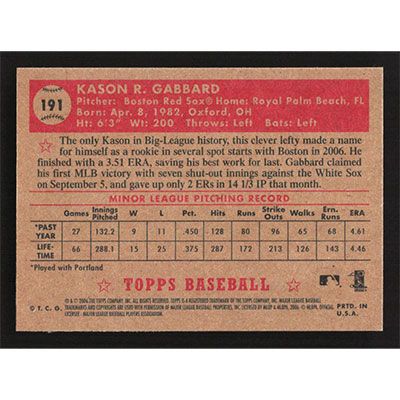 This is a 2006 Topps '52 Kason Gabbard baseball card. The card is #191 and pictures show condition.
