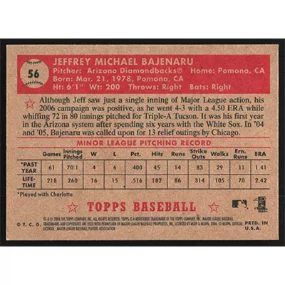 This is a 2006 Topps '52 Jeff Bajenaru baseball card. The card is #56 and pictures show condition.