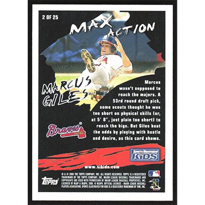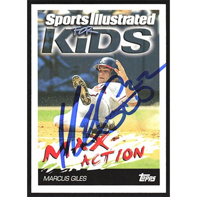 This is a 2006 Topps Opening Day Sports Illustrated For Kids Marcus Giles autographed baseball card. This card has been signed, in blue, by Marcus Giles, and is guaranteed authentic by Ballcardz.com. The card is #2 and pictures show condition.