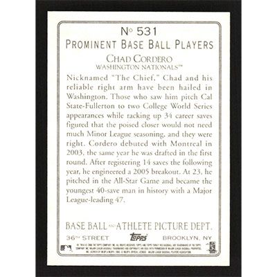 This is a 2006 Topps Turkey Red Chad Cordero baseball card. The card is #531 and pictures show condition.