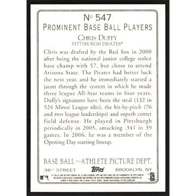 This is a 2006 Topps Turkey Red Chris Duffy baseball card. The card is #547 and pictures show condition.