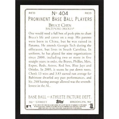 This is a 2006 Topps Turkey Red Red Bruce Chen baseball card. The card is #404 and pictures show condition.