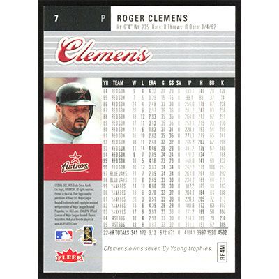 This is a 2006 Ultra Roger Clemens baseball card. The card is #7 and pictures show condition.