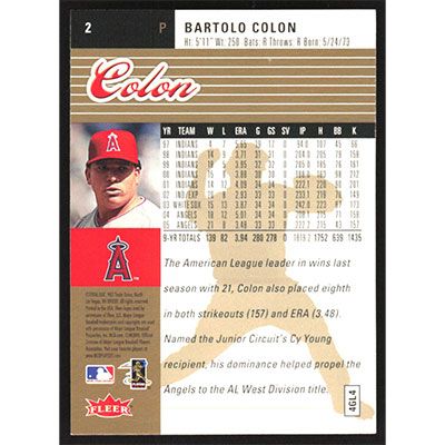 This is a 2006 Ultra Gold Medallion Bartolo Colon baseball card. The card is #2 and pictures show condition.