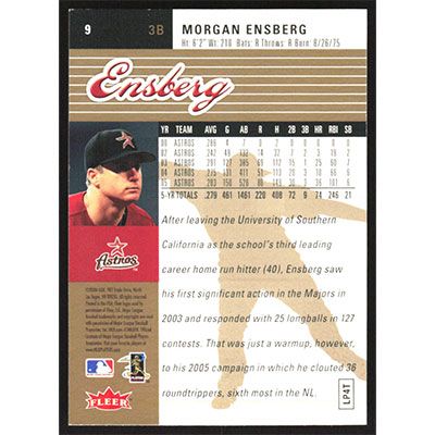 This is a 2006 Ultra Gold Medallion Morgan Ensberg baseball card. The card is #9 and pictures show condition.