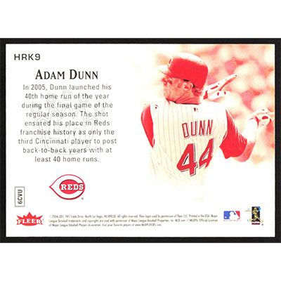 This is a 2006 Ultra Home Run Kings Adam Dunn baseball card. The card is #HRK9 and pictures show condition.