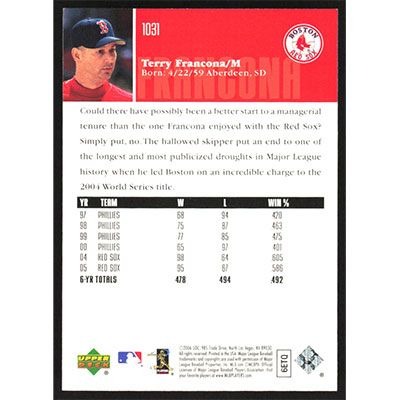 This is a 2006 Upper Deck Terry Francona baseball card. The card is #1031 and pictures show condition.
