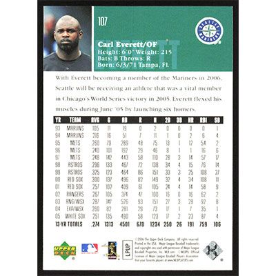 This is a 2006 Upper Deck Carl Everett baseball card. The card is #107 and pictures show condition.