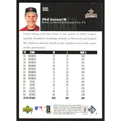 This is a 2006 Upper Deck Phil Garner baseball card. The card is #1085 and pictures show condition.