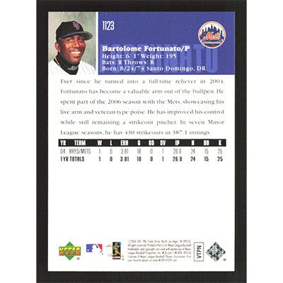 This is a 2006 Upper Deck Bartolome Fortunato baseball card. The card is #1123 and pictures show condition.