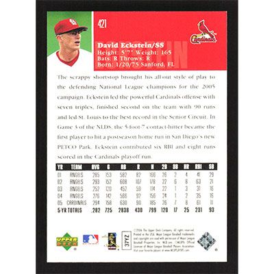 This is a 2006 Upper Deck David Eckstein baseball card. The card is #421 and pictures show condition.