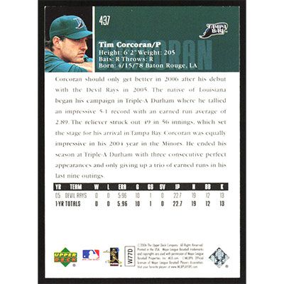 This is a 2006 Upper Deck Tim Corcoran baseball card. The card is #437 and pictures show condition.