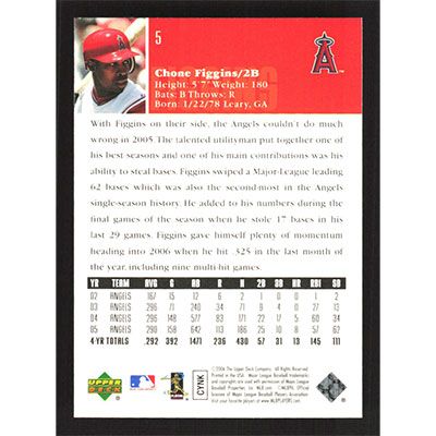 This is a 2006 Upper Deck Chone Figgins baseball card. The card is #5 and pictures show condition.