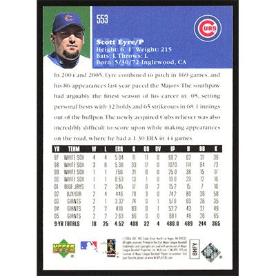 This is a 2006 Upper Deck Scott Eyre baseball card. The card is #553 and pictures show condition.