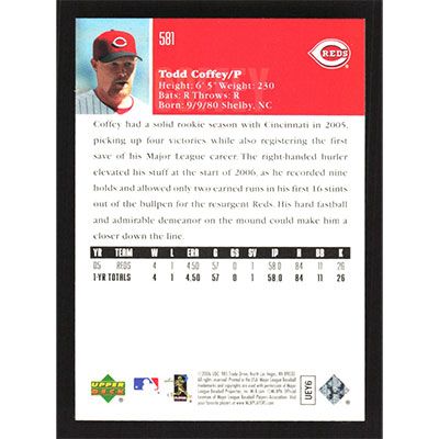 This is a 2006 Upper Deck Todd Coffey baseball card. The card is #581 and pictures show condition.