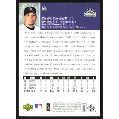 This is a 2006 Upper Deck David Cortes baseball card. The card is #595 and pictures show condition.