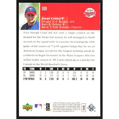 This is a 2006 Upper Deck Jesse Crain baseball card. The card is #690 and pictures show condition.