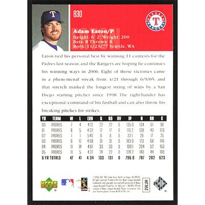 This is a 2006 Upper Deck Adam Eaton baseball card. The card is #830 and pictures show condition.