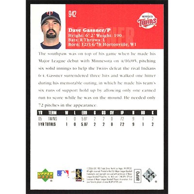This is a 2006 Upper Deck Dave Gassner baseball card. The card is #942 and pictures show condition.